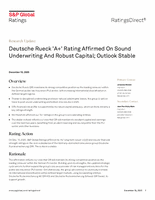 Im aktuellen Ratingbericht lobt Standard & Poor’s die nachhaltige, solide Kapitalausstattung auf “AAA”-Niveau, die starke Wettbewerbsposition und die sichere Ertragslage der Deutsche Rück Gruppe. Diese Faktoren stützen sich auf risikoadäquates Underwriting und eine effektive Retrozessionsstruktur.
